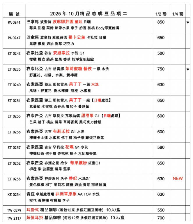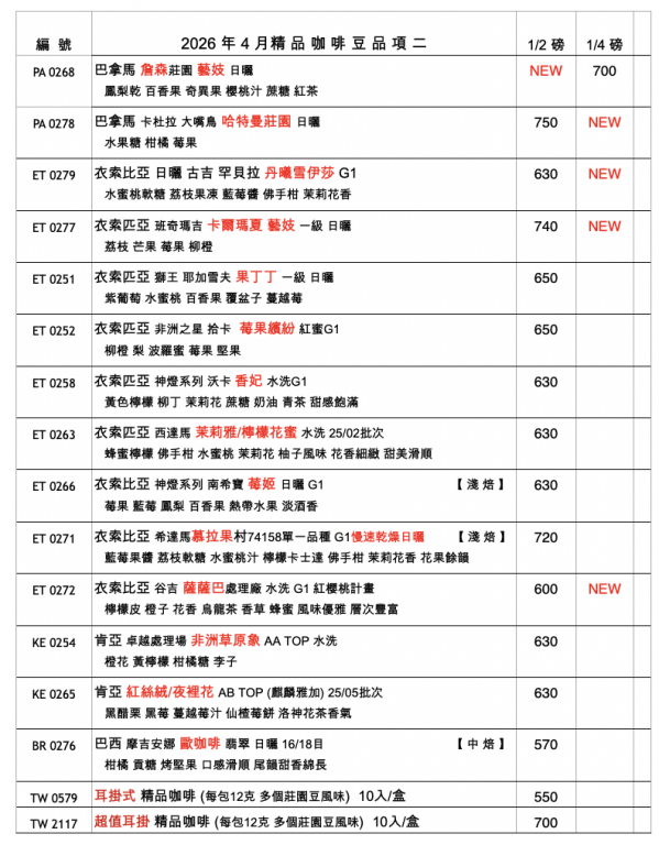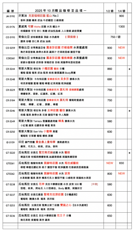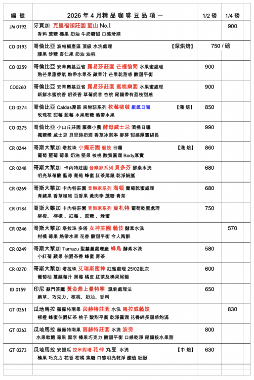 烘焙度皆為【淺中焙】,如有特殊會另標示